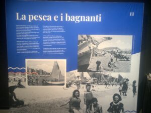 Non mancano gli strumenti multimediali, visori, proiezioni immersive, tavoli multitouch, ma fa la sua figura anche il bel plastico del tratto di lungomare del nucleo urbano con le storie dei pescatori e del primo turismo balneare del secondo novecento, quando il mare diventa anche il dono prezioso di un tempo di vacanza e riposo.