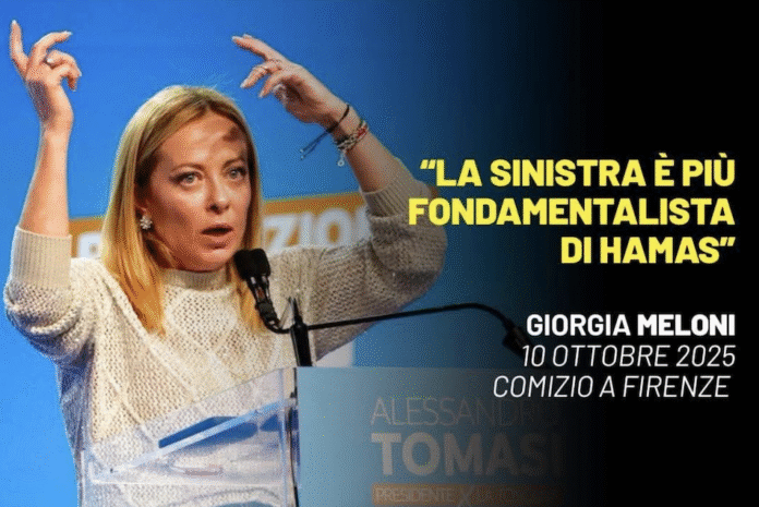 La vera natura della Meloni viene sempre fuori, sia quando era all’opposizione, sia — ancor di più — oggi che governa il Paese. È alla costante ricerca di un nemico, e il suo accanimento brutale nei confronti degli altri — ovvero di chi sta a sinistra — emerge con tutta la sua virulenza nei momenti più significativi: in una discussione, in una lamentela, o nella chiusura di una campagna elettorale.